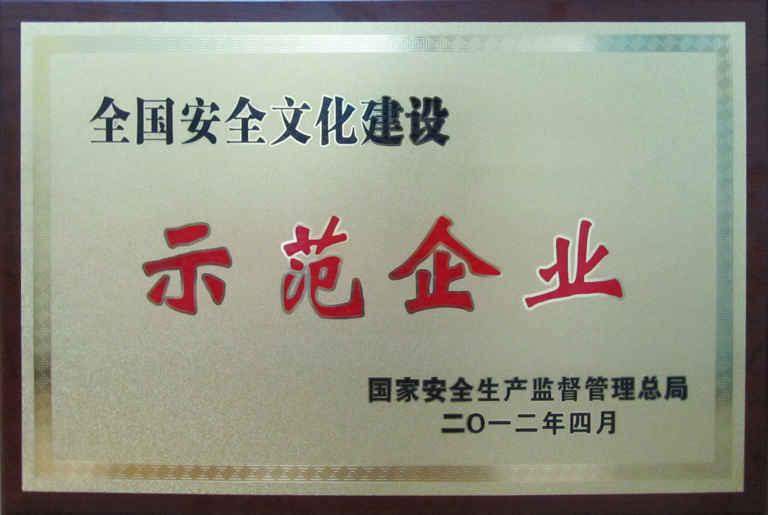 集團(tuán)公司獲全國(guó)安全文化建設(shè)示范企業(yè)稱號(hào)