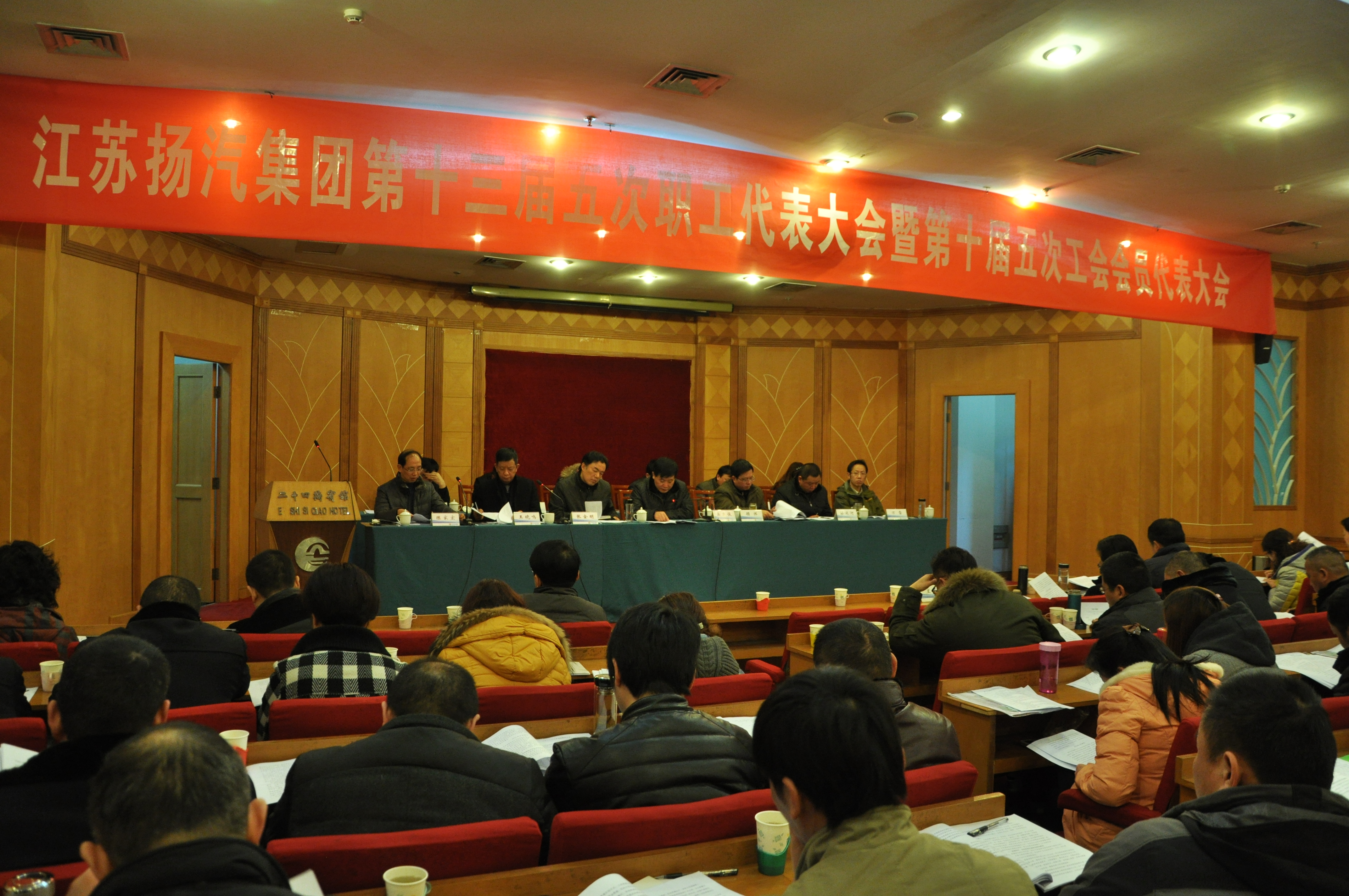 江蘇省揚(yáng)州汽車運(yùn)輸集團(tuán)公司第十三屆職工代表大會五次會議暨第十屆工會會員代表大會五次會議于2014年3月6日在二十四橋賓館召開。集團(tuán)公司領(lǐng)導(dǎo)吳忠俊、顧懷、張金明、蔡運(yùn)河、王曉鳴、萬雷、陳家宏及106名職工代表參加大會,各處室部門負(fù)責(zé)人,二級單位及控股、參股單位黨政工主要負(fù)責(zé)人16人列席了會議。