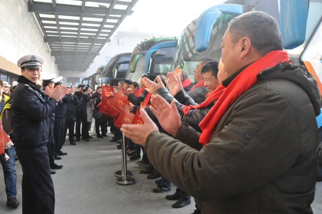 2月1日上午8點(diǎn)30分,揚(yáng)州市2018年春運(yùn)啟動(dòng)儀式在西部樞紐揚(yáng)州客運(yùn)站舉行。民警、駕駛員、美團(tuán)騎手、文明交通志愿者等代表參加活動(dòng)。揚(yáng)州市公安局、交通運(yùn)輸局、安監(jiān)局、交警支隊(duì)、運(yùn)管處、中國人壽、揚(yáng)汽集團(tuán)等部門單位領(lǐng)導(dǎo)出席活動(dòng)。