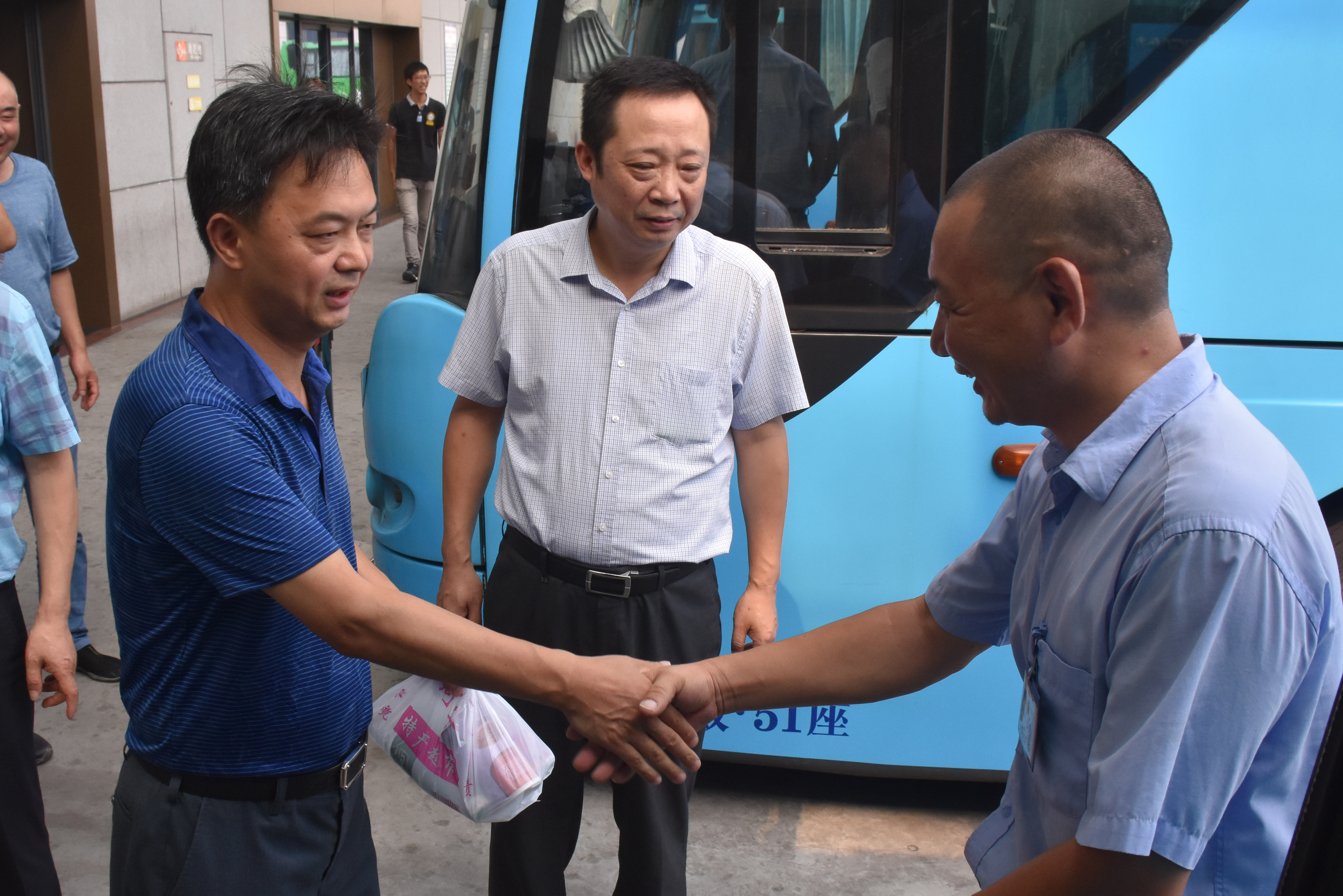 凌董事長一行對西部樞紐揚(yáng)州站的候車廳、安檢口、換乘中心等部位進(jìn)行巡視。發(fā)車場上,午后的驕陽下,一輛輛大客車整裝待發(fā),發(fā)動(dòng)機(jī)艙里涌出陣陣熱浪,凌董事長逐一給駕駛員送上防暑降溫用品,并一再叮囑要注意夏季“三防”,確保行車安全。隨后,董事長一行來到西部樞紐公交場站進(jìn)行慰問。