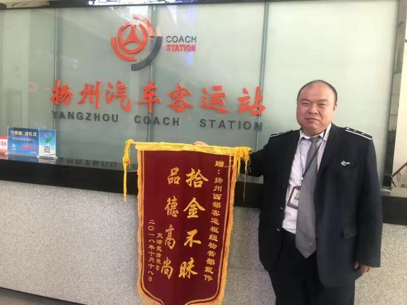 今天上午一早,揚(yáng)州西部樞紐客運(yùn)站站長(zhǎng)室就收到了來(lái)自天津市武清區(qū)市民朱朝艷郵來(lái)的錦旗和熱情洋溢的感謝信,感謝揚(yáng)州站員工戴偉拾金不昧的高尚品德。