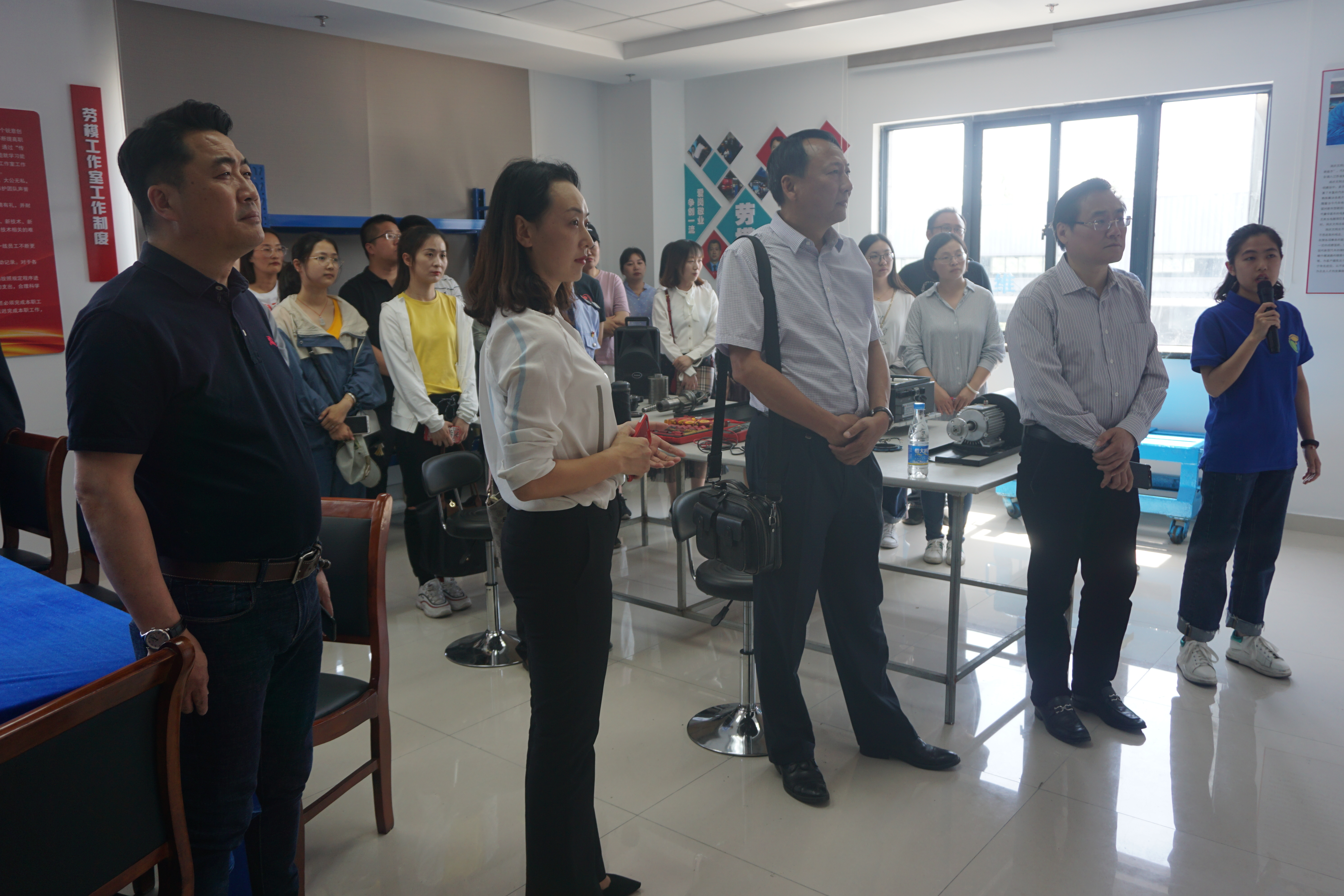 上午,青年骨干跟隨跟班勞模師父進(jìn)行實(shí)崗體驗(yàn)學(xué)習(xí)。下午,勞模們和青年骨干在國資委副調(diào)研員王寧生、市交通產(chǎn)業(yè)集團(tuán)黨委辦主任呂進(jìn)、副主任杜璽瓊的帶領(lǐng)下,來到修理廠,實(shí)地參觀了揚(yáng)汽集團(tuán)修理廠勞模創(chuàng)新工作室,通過現(xiàn)場介紹,使廣大青年骨干對勞模創(chuàng)新工作室的工作理念、創(chuàng)建成果、工作實(shí)效、機(jī)制載體等方面有了具體的認(rèn)識,對勞模創(chuàng)新工作室在加速職工成才、技術(shù)創(chuàng)新等方面所發(fā)揮的引領(lǐng)作用有了全新的理解。