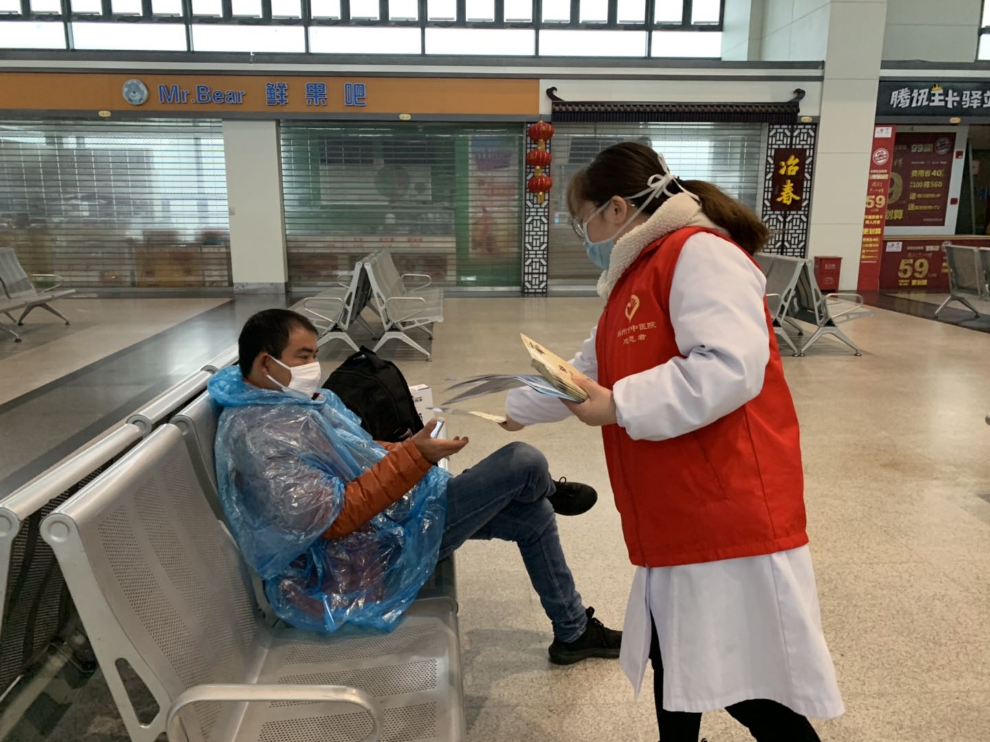 2月25日揚州站復(fù)工復(fù)產(chǎn)的第二天,揚州市中醫(yī)院抗“疫”小分隊為揚州汽車站里的旅客們和堅守在一線崗位的職工送來了抗疫藥品和義診服務(wù)。
