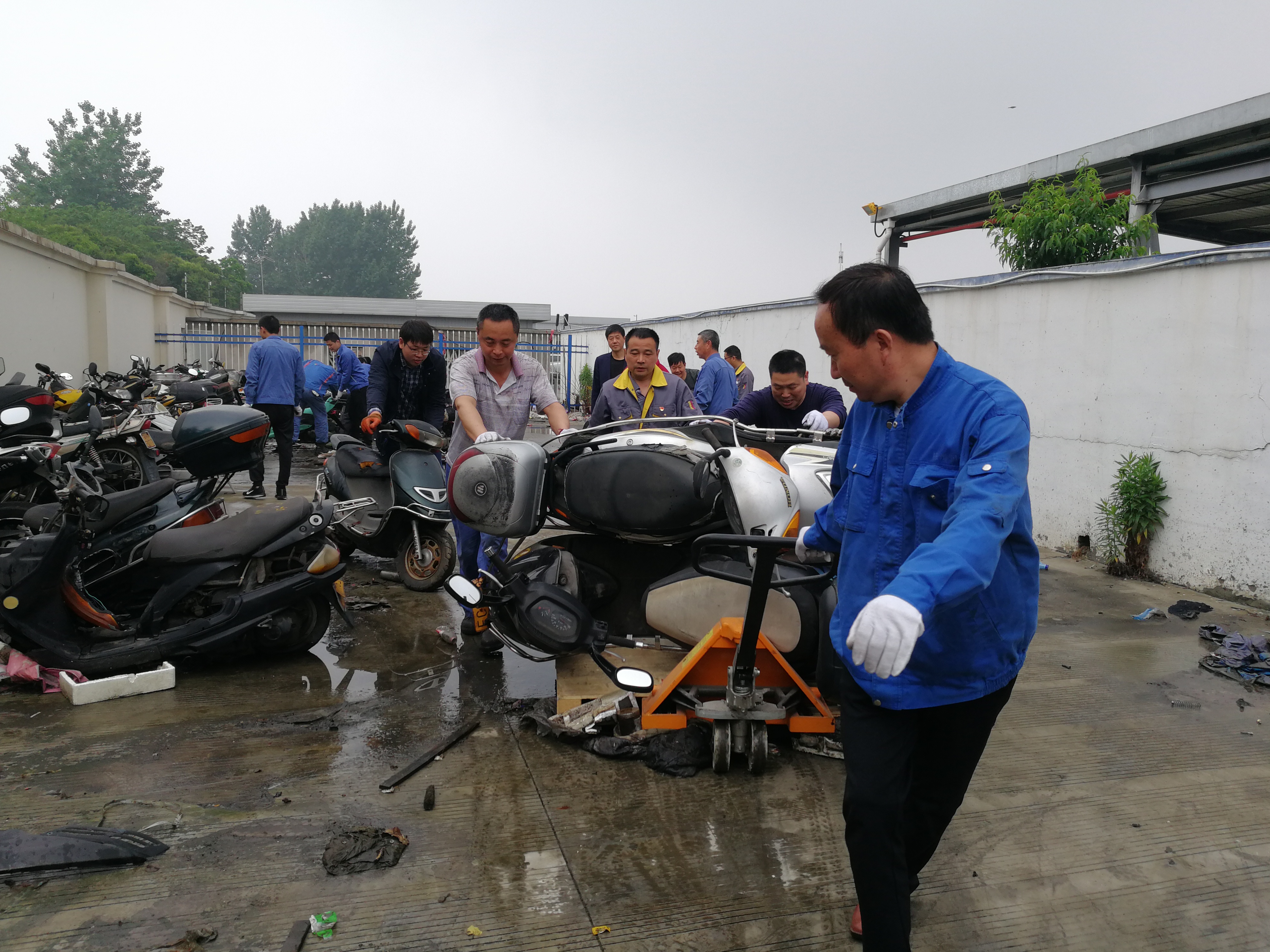 5月15日上午,由揚汽修理廠黨員先鋒隊,各部門班組的骨干和青工組成的搬運突擊隊40余人,對緊鄰天燃氣加氣站的施救中心扣押場地進行清場,消除安全隱患。