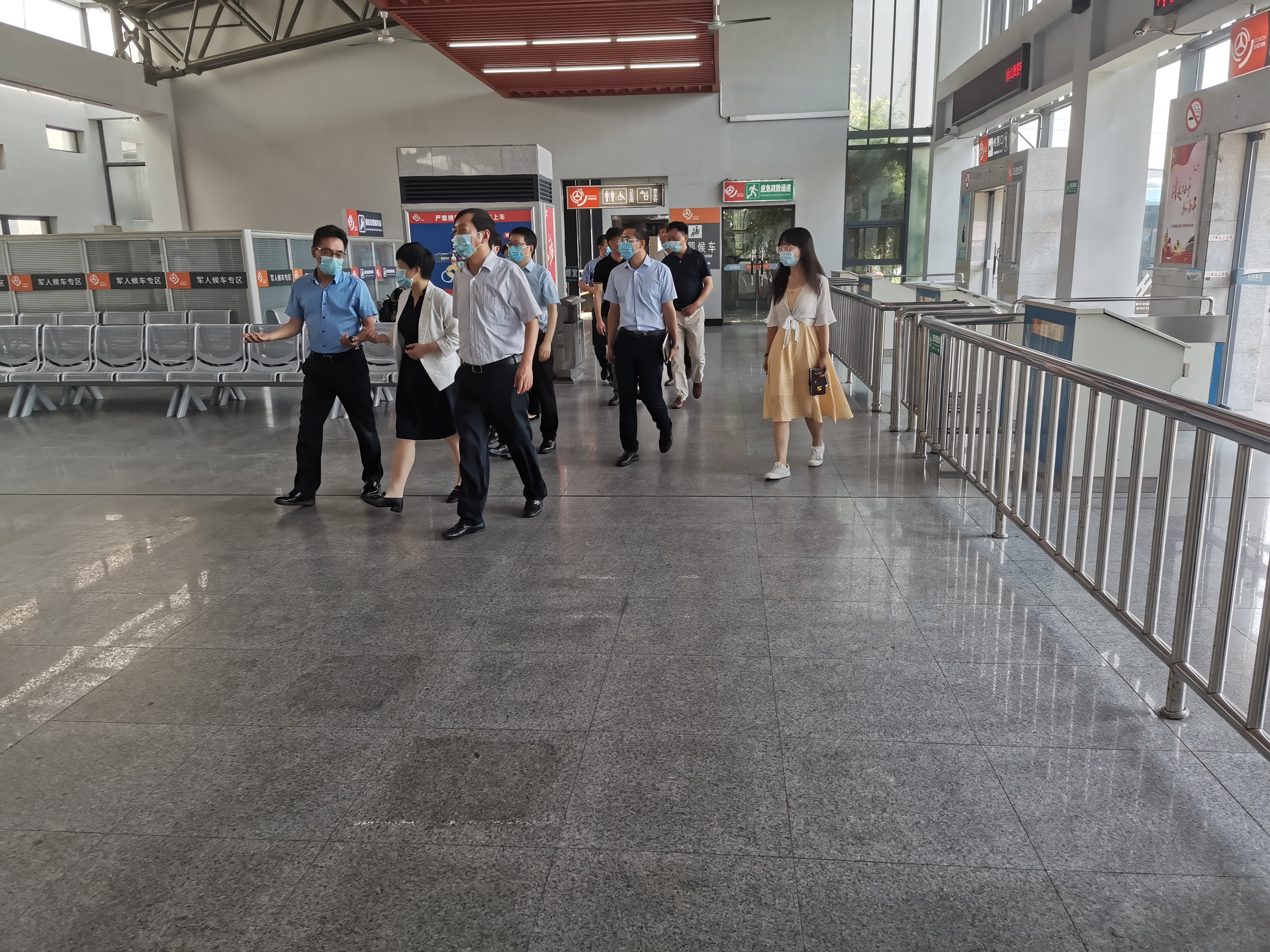 9月7日上午,揚(yáng)州市江都區(qū)委副書記代區(qū)長朱莉莉、江都區(qū)區(qū)委常委宣傳部部長顧明帶隊(duì)突擊檢查了揚(yáng)汽集團(tuán)江都汽車客運(yùn)站文明創(chuàng)建工作的落實(shí)情況。江都區(qū)交通運(yùn)輸局局長高峰,江都站經(jīng)理劉俊、副經(jīng)理張俊等相關(guān)負(fù)責(zé)人陪同檢查。