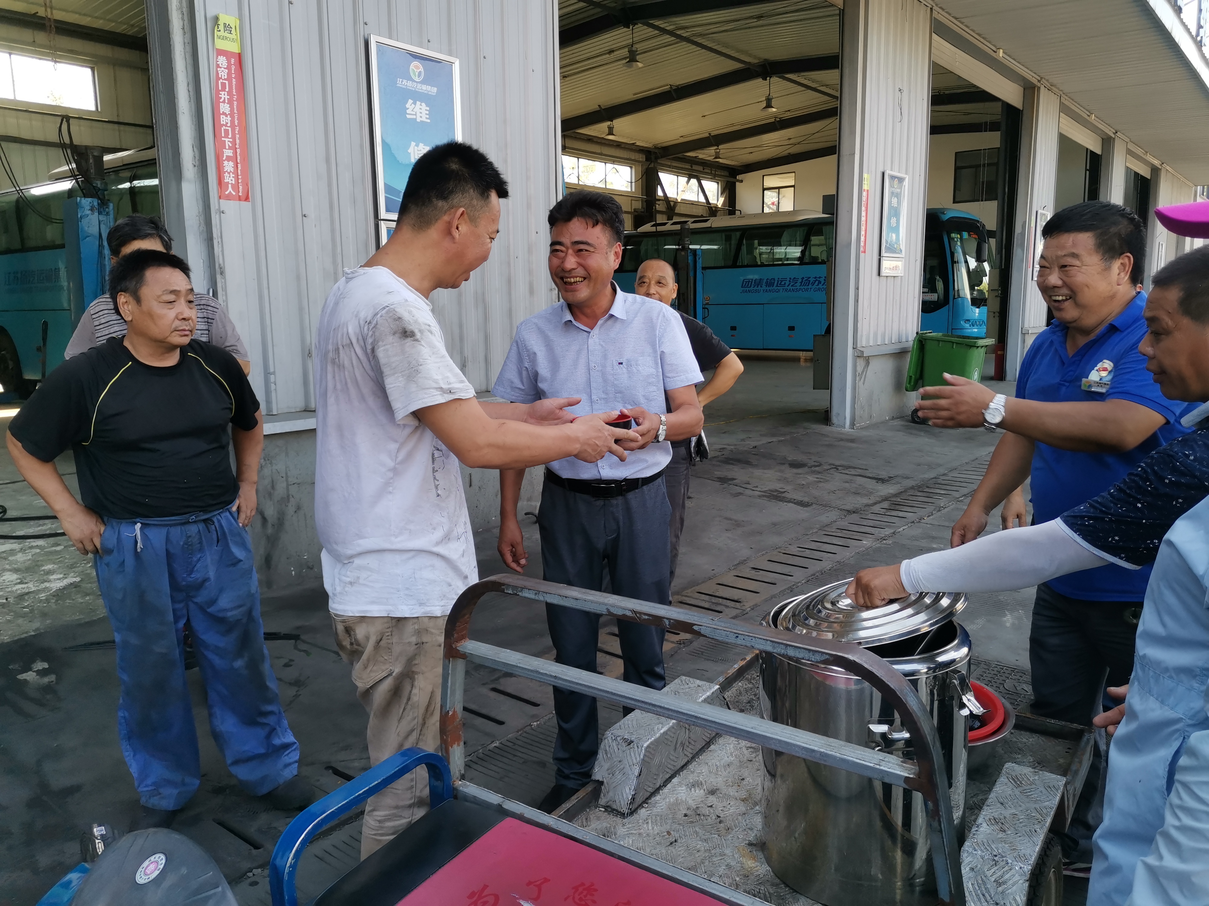 為做好防暑降溫工作,保障生產(chǎn)一線職工的健康權(quán)益, 8月19日至20日,集團公司工會組織開展“送清涼”慰問活動,采購了近400份毛巾、肥皂、花露水、菊花茶等清涼祛暑用品。集團公司黨委副書記、工會主席顧懷帶隊先后來到三大車站、修理廠和教培中心,把清涼用品送到一線職工手中,感謝他們的辛勤付出,并囑咐大家合理調(diào)整作息時間,科學(xué)安排工作量,防范各類安全事故的發(fā)生,F(xiàn)場職工也紛紛表示,雖然天氣炎熱,但能深切感受到工會“娘家人”對他們的關(guān)愛,大家一定會克服酷暑高溫,堅守崗位,盡職盡責(zé),積極投身到生產(chǎn)經(jīng)營中去,保質(zhì)保量地完成年度各項任務(wù)指標。