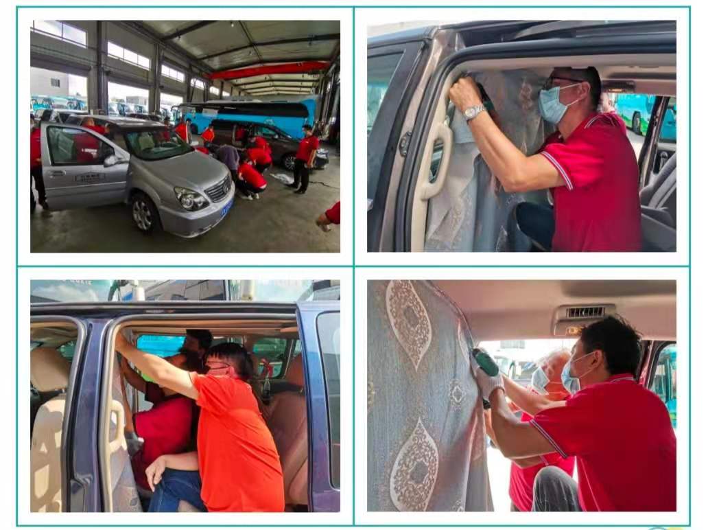接到緊急指令后,修理廠立即召開會(huì)議,并迅速組建項(xiàng)目改造攻堅(jiān)小組,統(tǒng)籌協(xié)調(diào),明確責(zé)任分工,細(xì)化工作落實(shí),明確改造進(jìn)度,進(jìn)行防疫接駁轉(zhuǎn)運(yùn)車的改造,每輛車都加裝分隔簾,將駕駛艙與接駁轉(zhuǎn)運(yùn)艙隔離。在承接轉(zhuǎn)運(yùn)的工作人員與乘客間之間,拉起一層保護(hù)網(wǎng),有效切斷轉(zhuǎn)運(yùn)過(guò)程中工作人員與乘客間的病毒傳播途徑,更好的保護(hù)人員的安全。