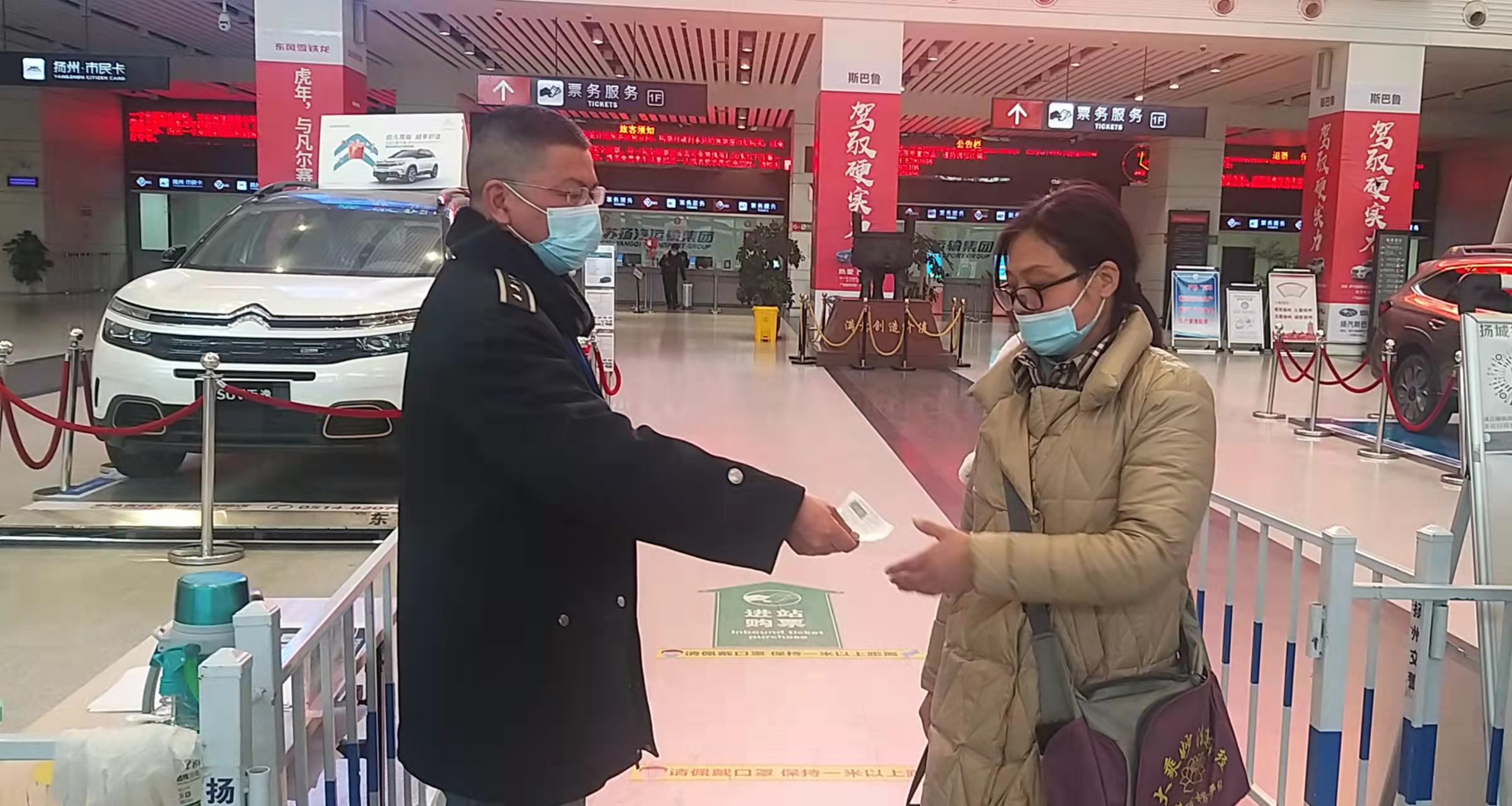 1月21日下午,揚(yáng)州汽車客運(yùn)站一樓大廳來了一對(duì)母女,倆人看上去有些異常,母親看上去精神狀態(tài)比較差,女兒衣服渾身上下臟兮兮的,一進(jìn)大廳,就焦急的詢問工作人員:“我票買錯(cuò)了,今天回不了家,怎么辦?”