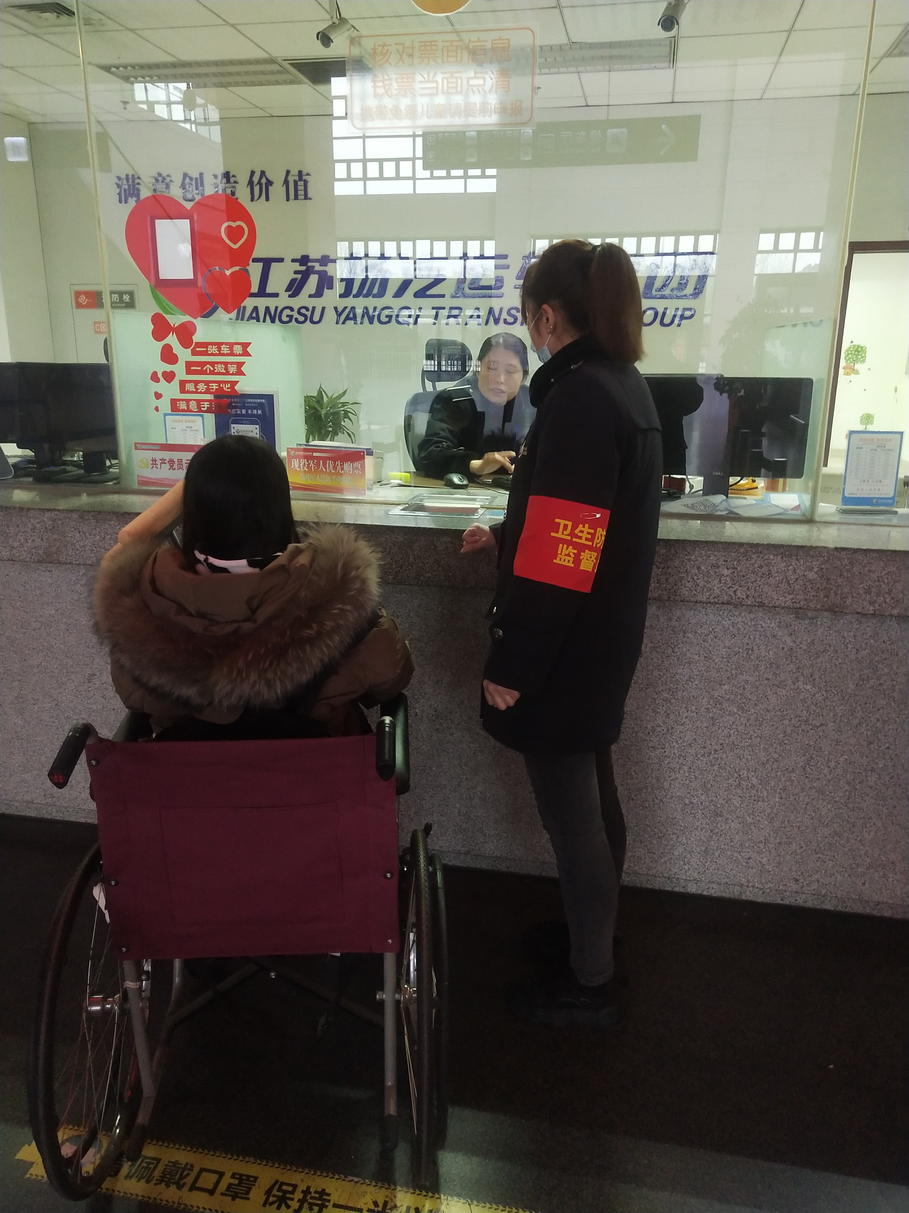 1月22日,一直在車站門口查看旅客行程碼的服務(wù)班班長(zhǎng)周俊云同志,看到了門口進(jìn)來(lái)的一位特殊旅客,只見這位女士腿上纏了厚厚的繃帶,拄著拐杖步履后困難的走著,周俊云同志立刻上前詢問(wèn)需不需要幫助,旅客見狀像遇見救星一樣:“謝謝,謝謝,腿骨折的就是不方便。”