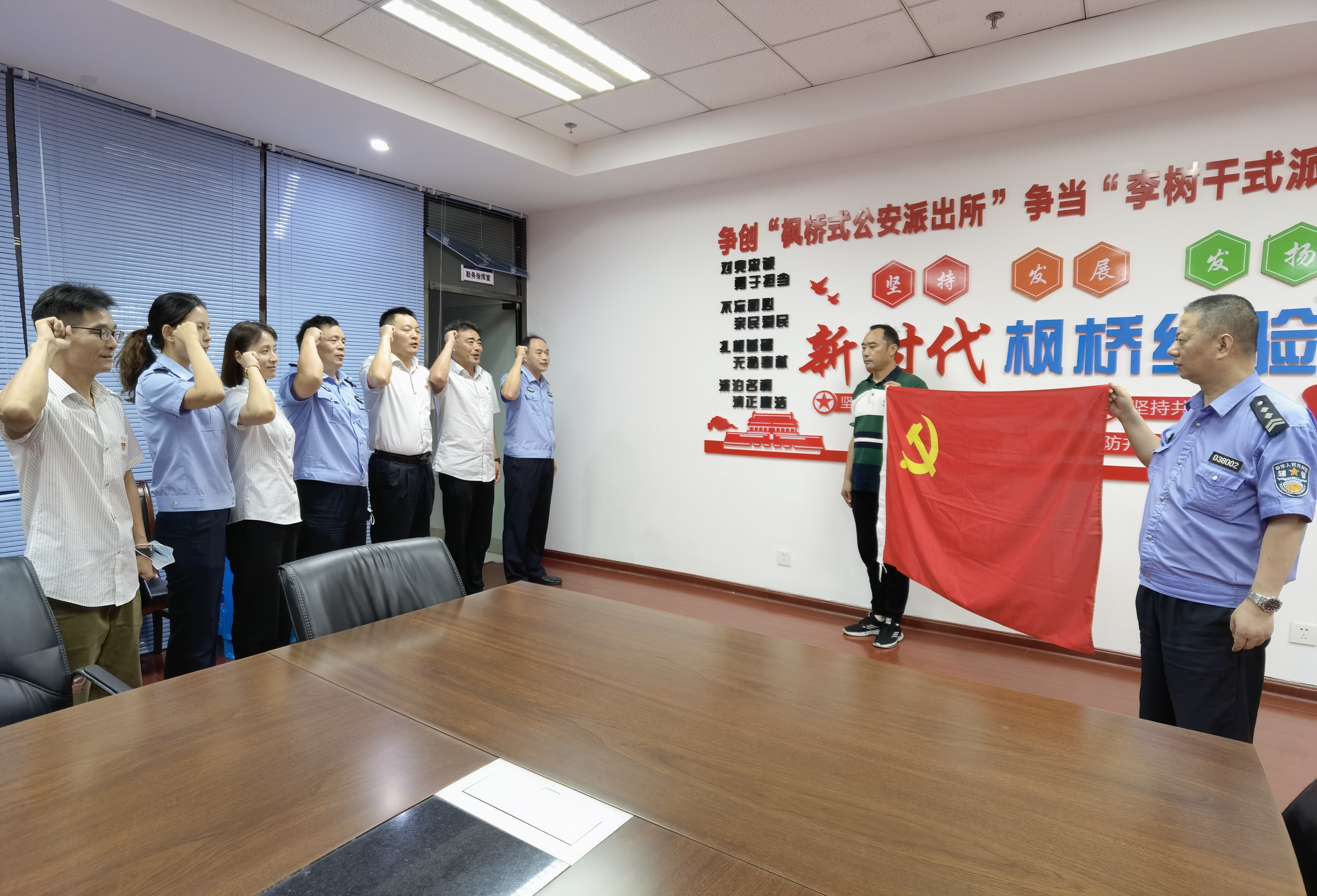 雙方支部圍繞如何利用黨建聯(lián)建加固戰(zhàn)斗堡壘、開展互幫互學(xué)、探索黨建工作新路徑、提升黨建質(zhì)量等方面進(jìn)行了座談交流,并達(dá)成了共識,加強警企溝通,有效地提高工作效率、提升工作效能,雙方黨員還一起重溫了入黨誓詞。