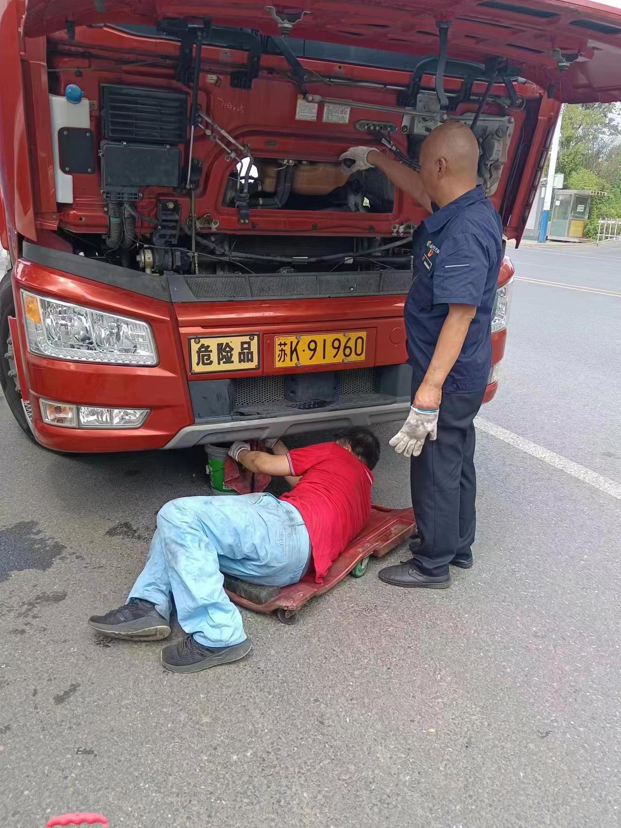 為盡快修復(fù)車輛,搶修人員趕到現(xiàn)場后,在確認(rèn)現(xiàn)場作業(yè)環(huán)境安全的情況下,立馬分工合作,迅速展開故障排查。憑借豐富的維修經(jīng)驗(yàn),很快便找到了故障點(diǎn)在于車輛打氣泵不工作,導(dǎo)致無法打氣,造成的車輛無法行駛。經(jīng)過兩個(gè)多小時(shí)的露天搶修,車輛終于恢復(fù)正常。在一旁等待的貨車?yán)习宓弥囕v恢復(fù)正常后,對揚(yáng)汽修理廠的服務(wù)以及維修師傅的技藝表示高度認(rèn)可。