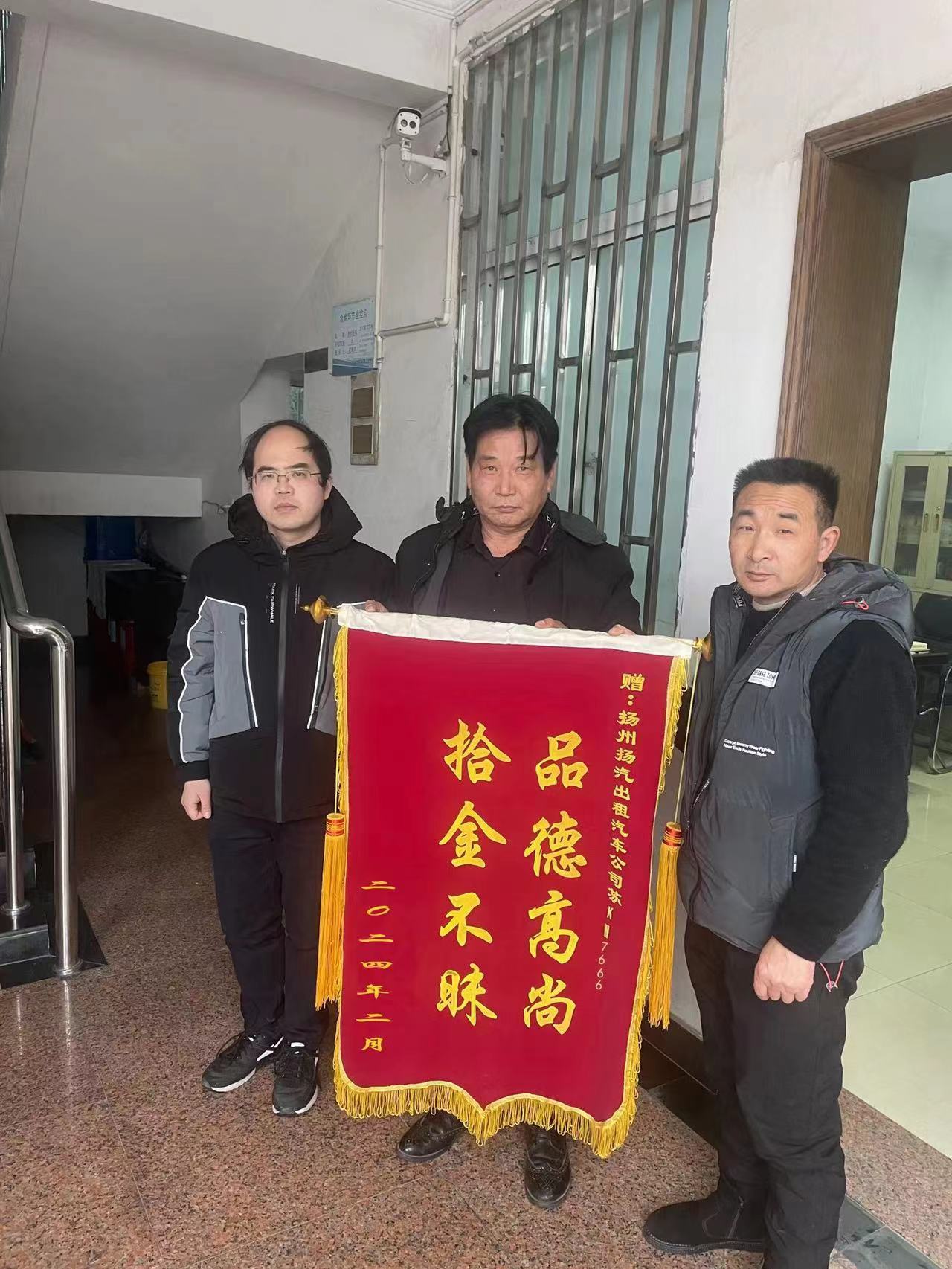 2月21日,揚(yáng)汽出租蘇KW7666出租車駕駛員楊文標(biāo)師傅拾金不昧,收到了乘客送來(lái)的錦旗,并向他表示感謝。