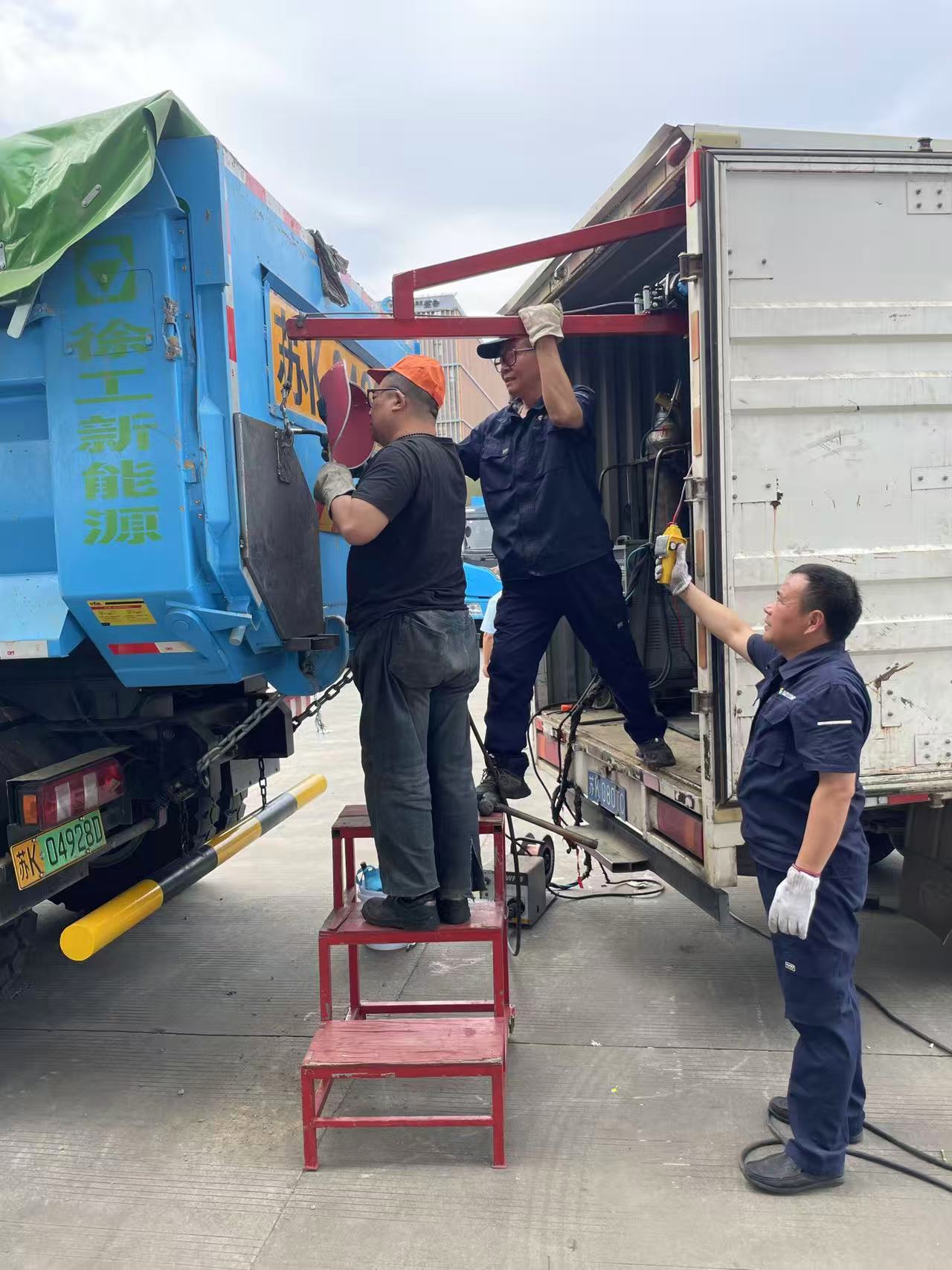 自首批新能源渣土車正式投入運營以來,通過實際使用后,準(zhǔn)備對車輛安全性能進行升級改造,加固后艙門、加裝防撞梁及改造燈光系統(tǒng)。揚汽修理廠接到兄弟單位的需求,迅速行動,組織技術(shù)骨干成立專項小組,第一時間趕赴現(xiàn)場開展定制化改造。